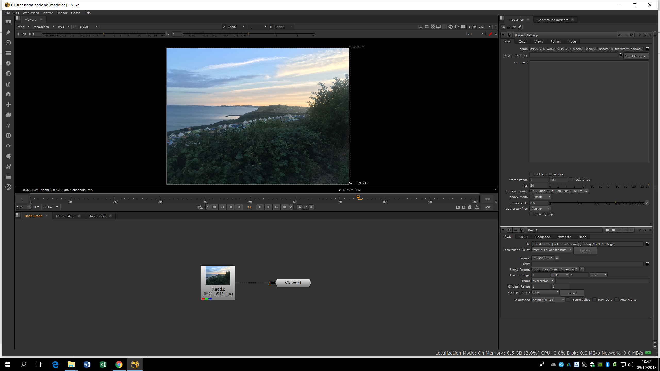 First of all, we will open out background footage. If we wish to change the dimensions of it, we can press s so view project settings. We can change, for example, the dimension of the picture, the color or the pixel ratio. We should make sure that both pictures we want to merge have similar features.