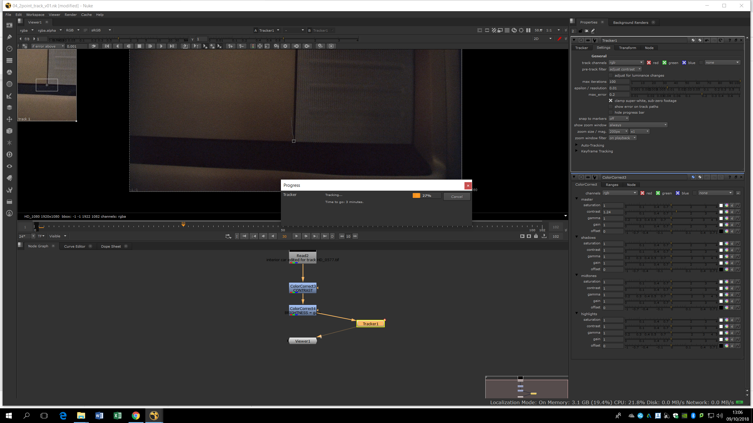The tracker tool locks itself into areas of contrast. Therefore, it can be used to draw the movement of certain objects in out composition. The tracker works with luminance, so if we want to track the movement of a shape, it would be much easier to put our tracking point in the edges and corners since they’re easier to recognize.