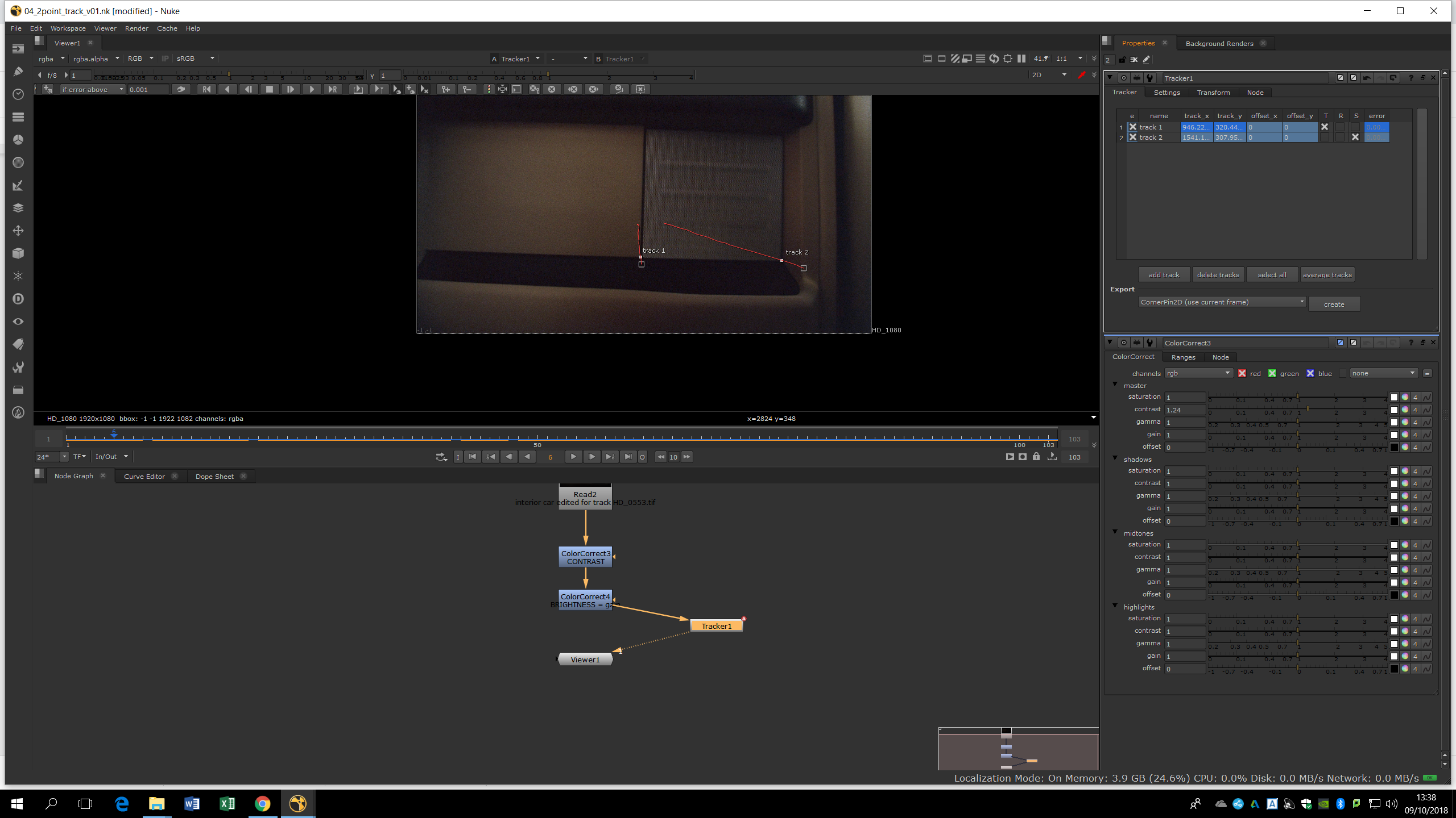 By adding two trackers we are going to be able to set the movement with one of the trackers, and the scale and rotation with the other. Anyway, to do that we will need to track something that is in the same plane, by clicking Alt+G.