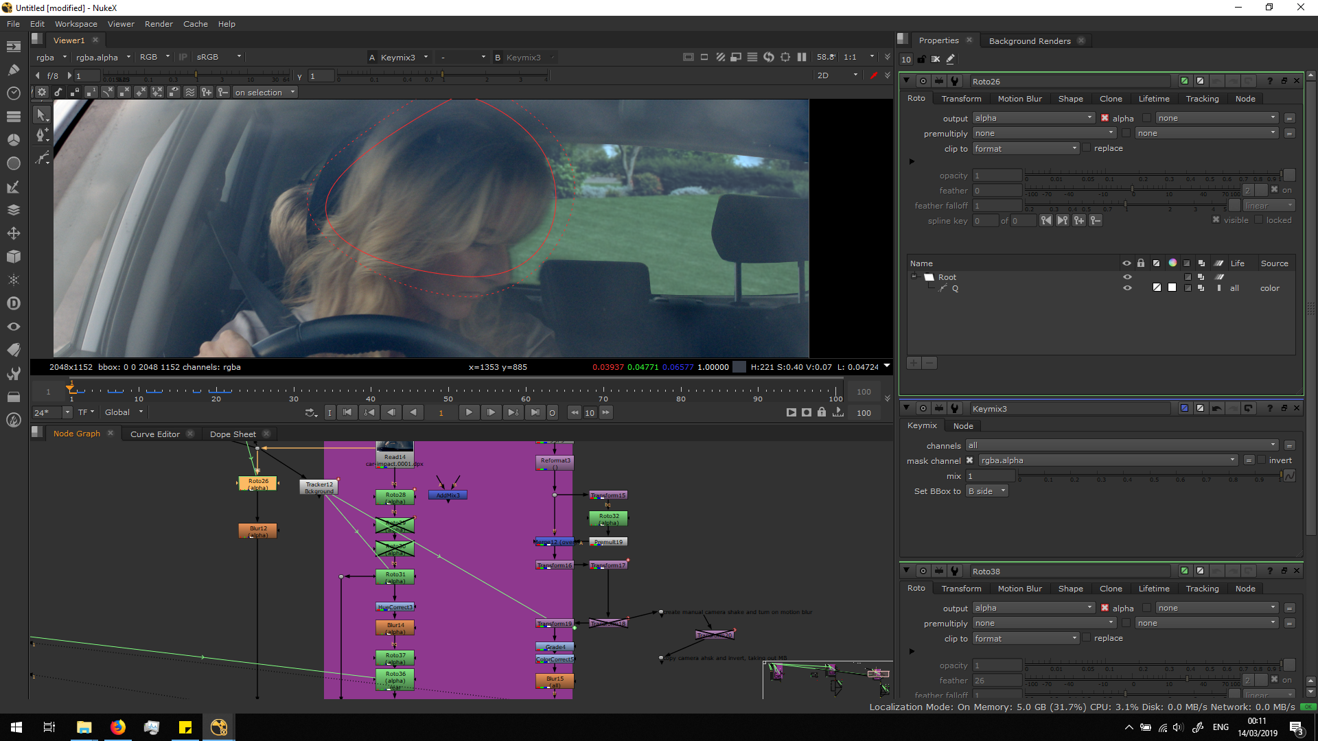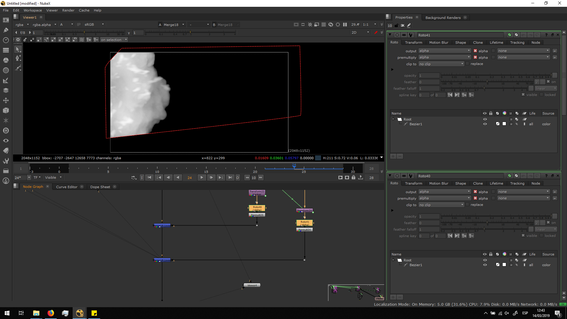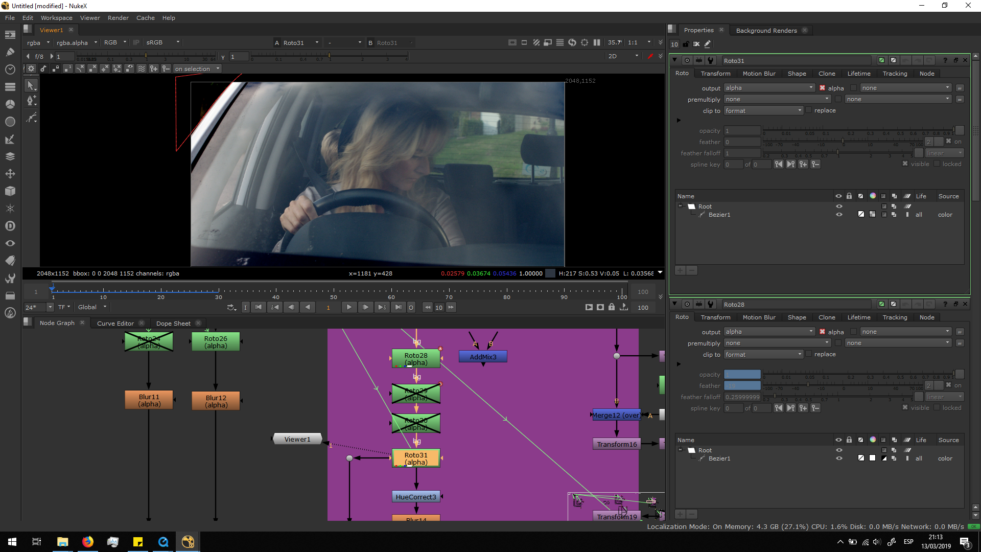 Then, I added a blur note in the alpha channel in order to soften the edges of the roto.