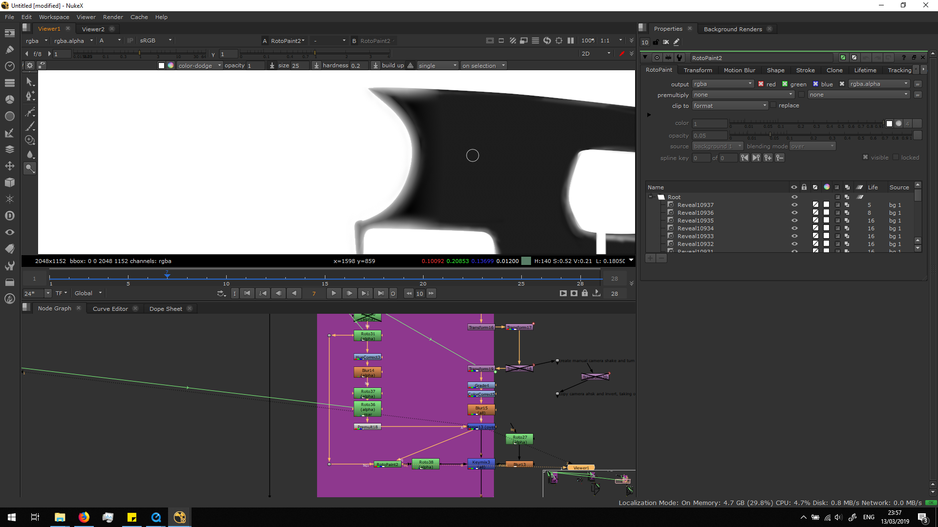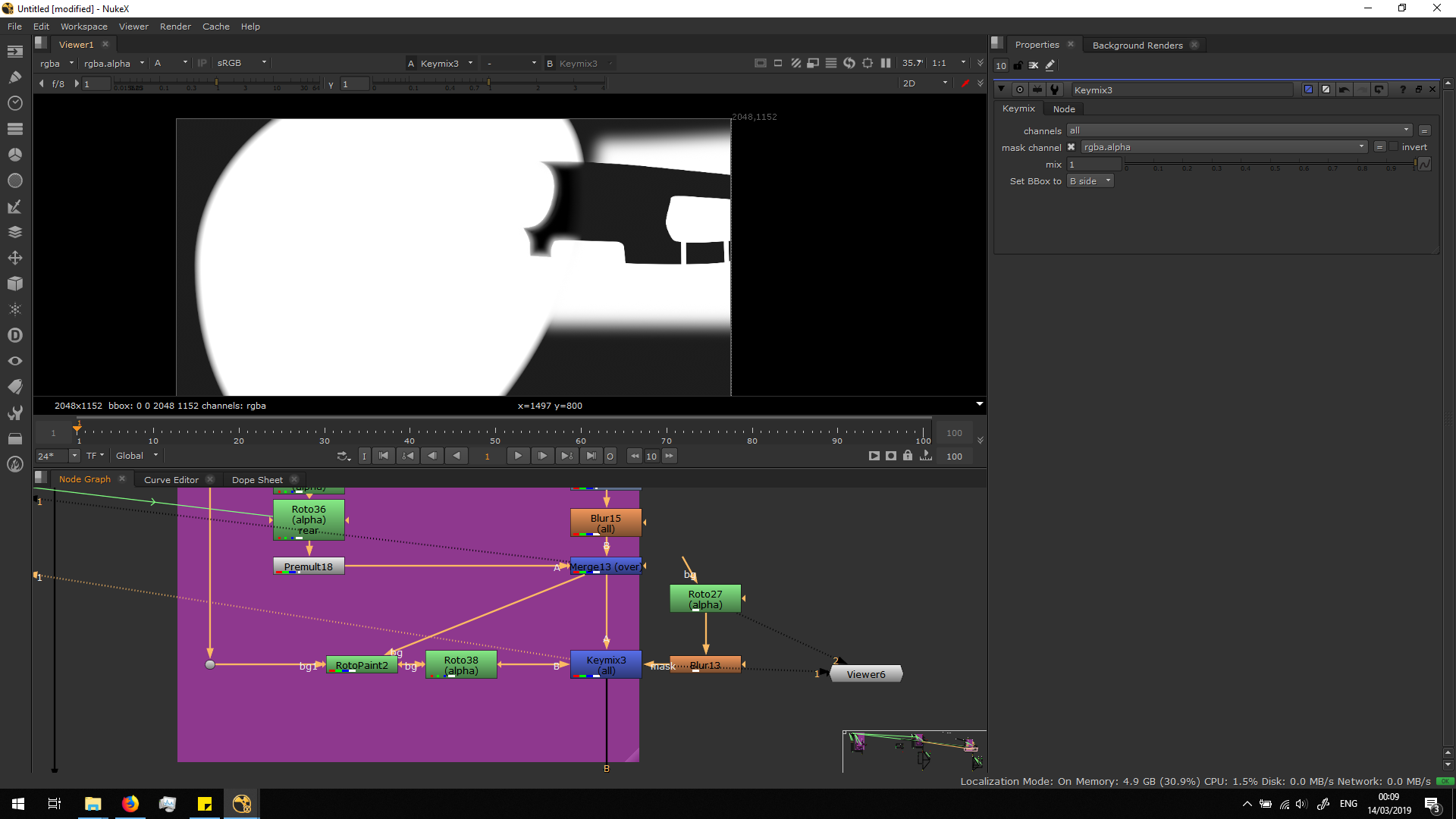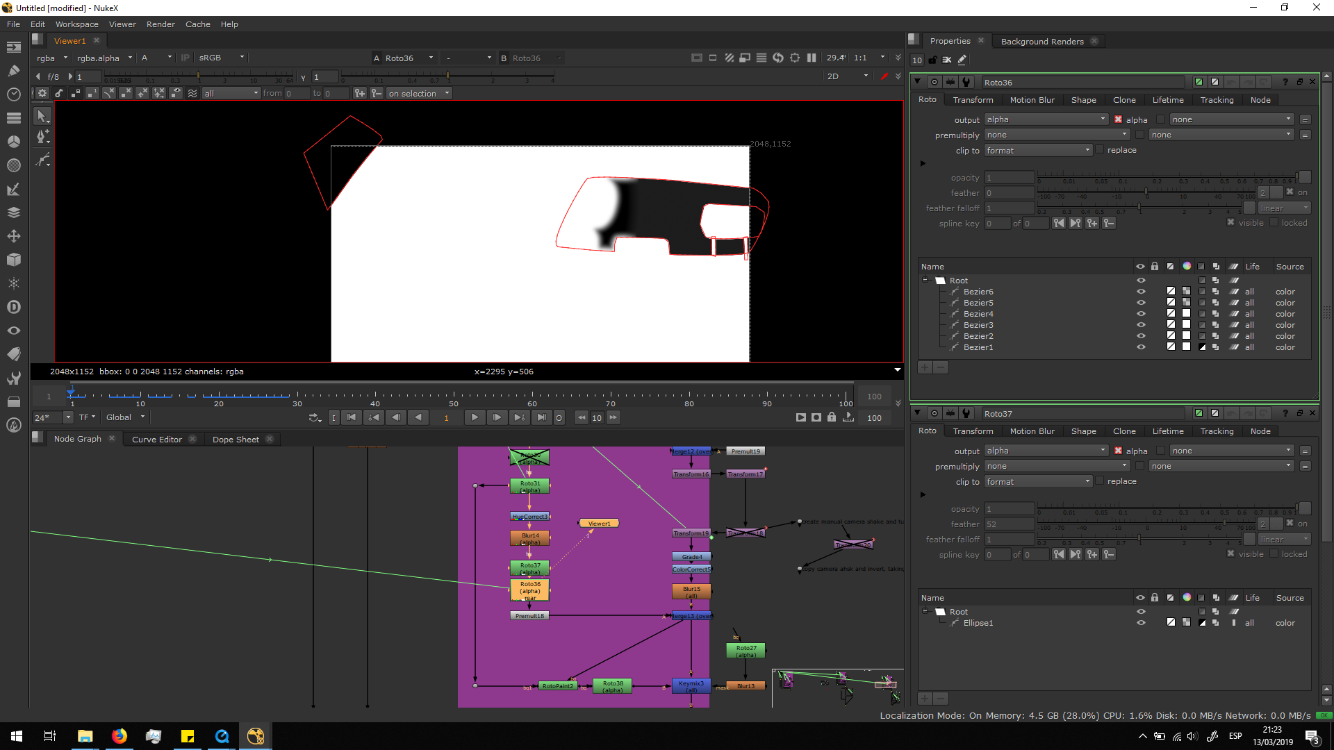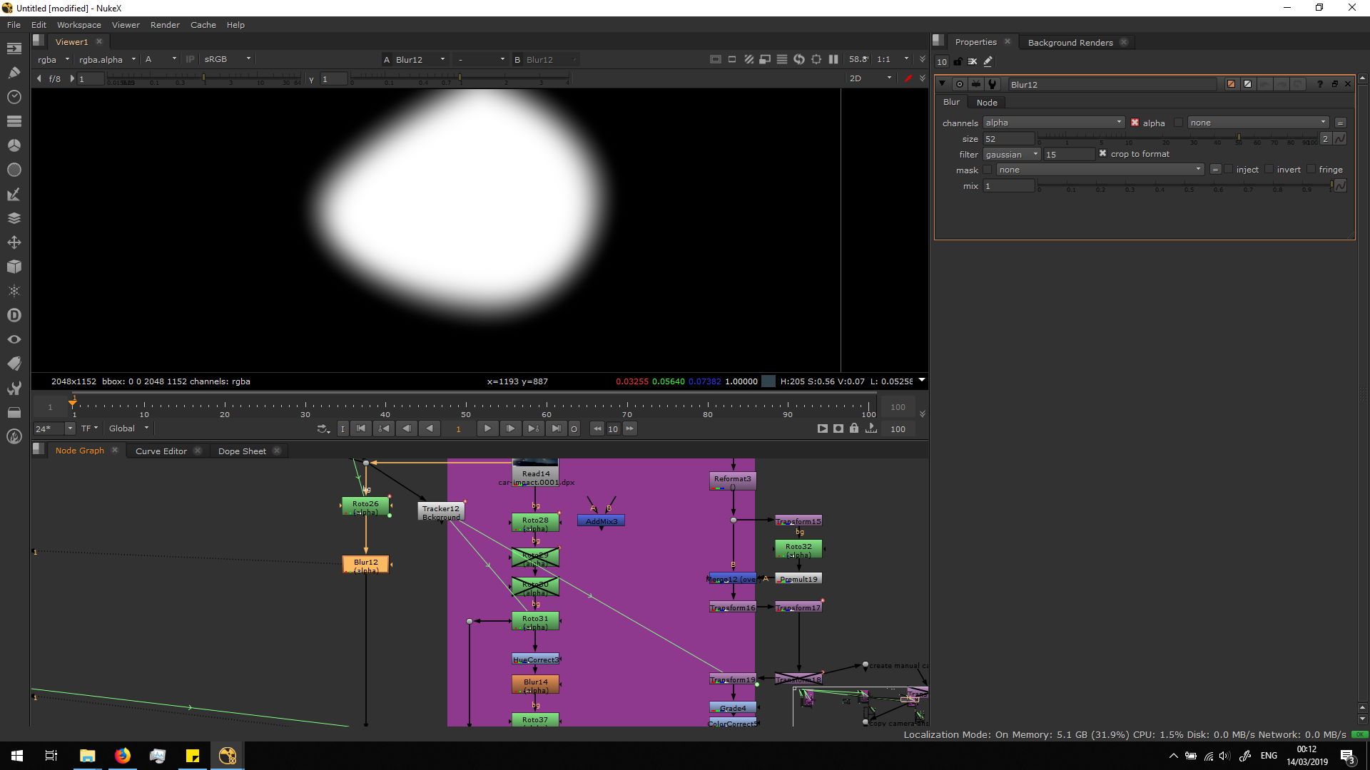 Then, I added a blur note in the alpha channel in order to soften the edges of the roto.