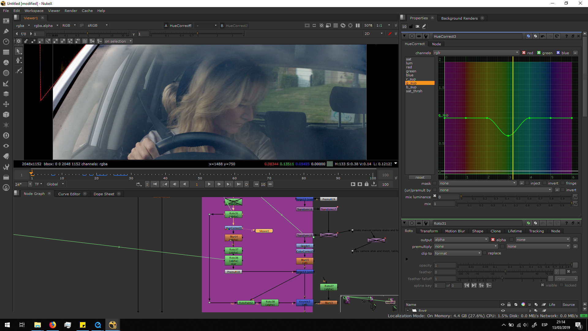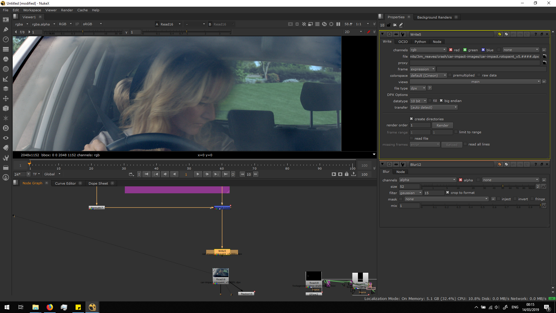 As the roto painting is really hard to process, I exported the result footage in .dpx in order to continue working with an already rendered image sequence.