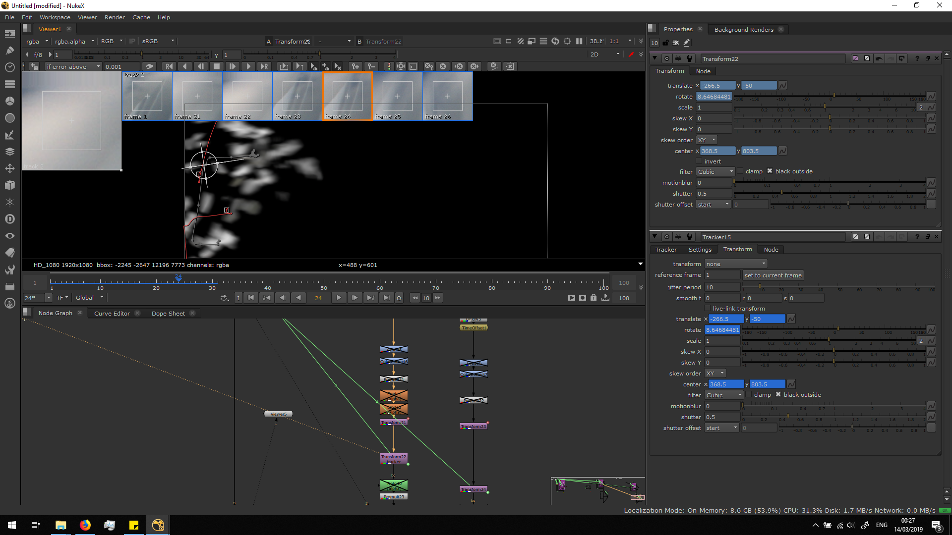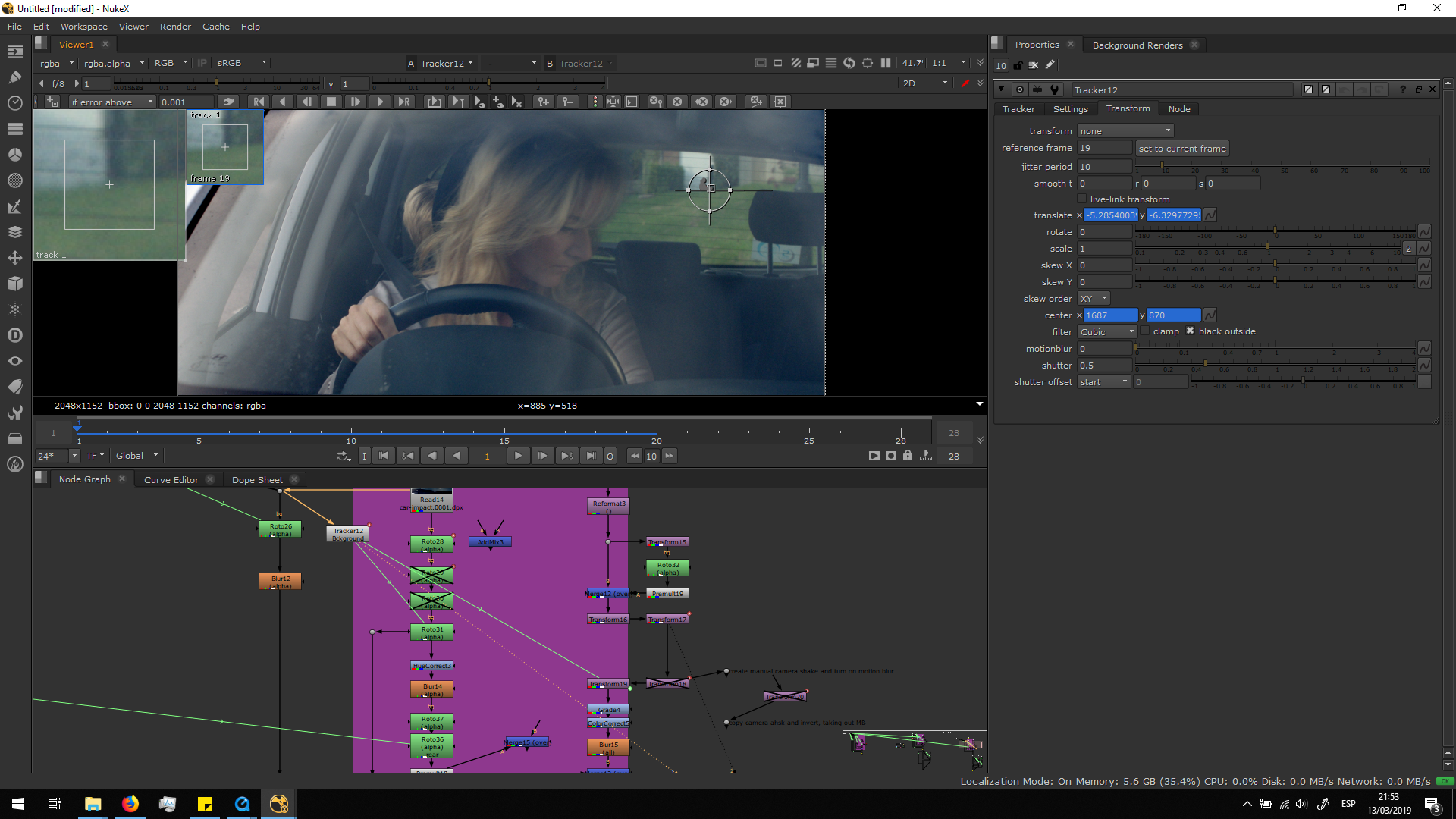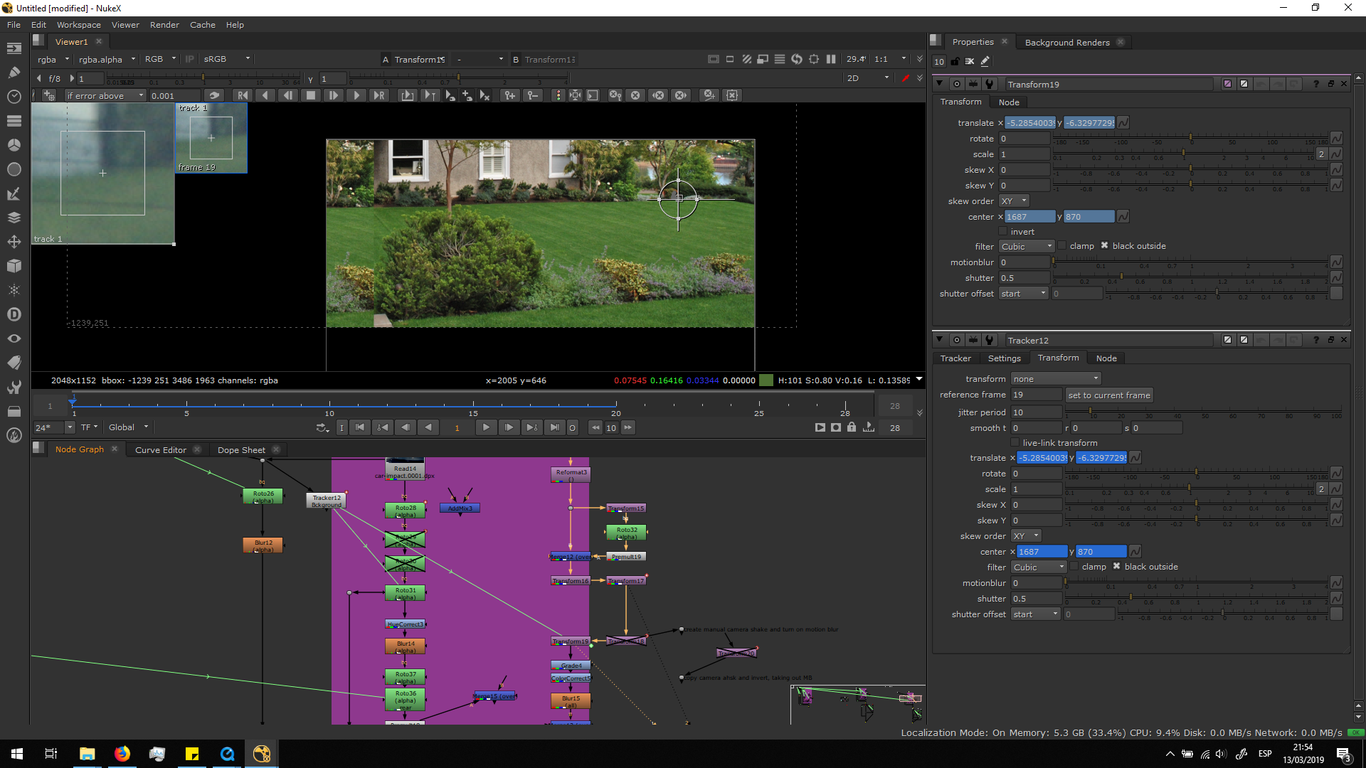 Once the track was done, I added a transform note and I copied the transform from the tracker into the background.