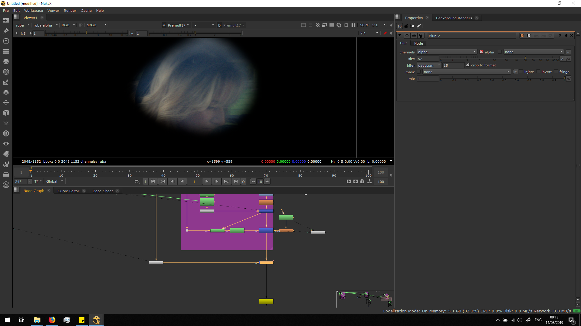 Then, I added a blur note for the alpha channel in order to smooth the mask much more.