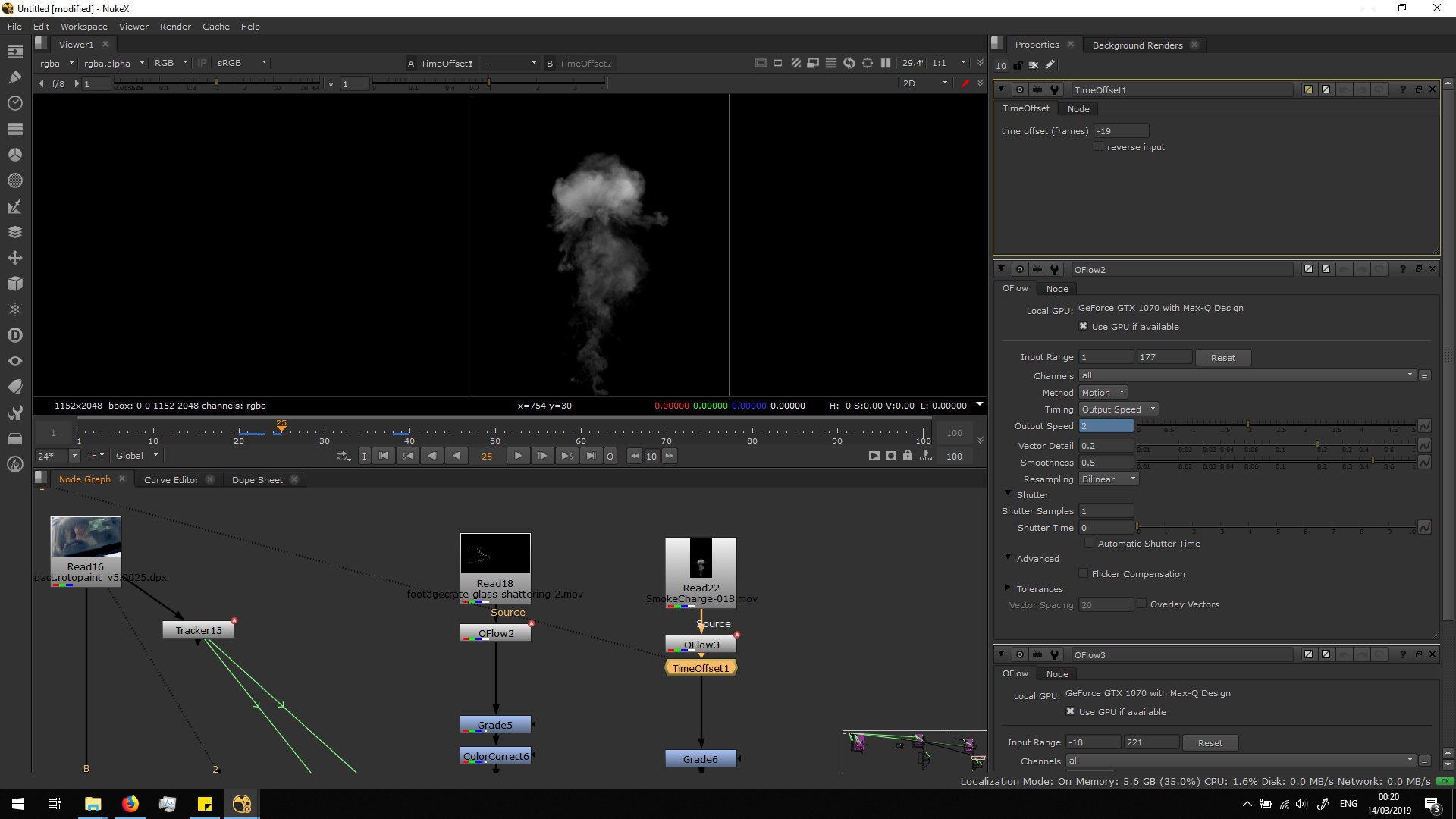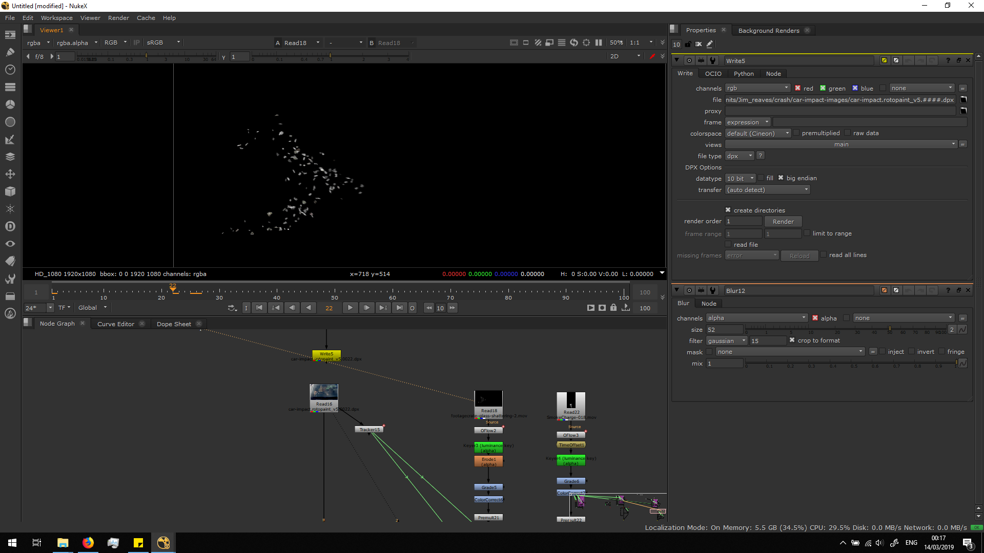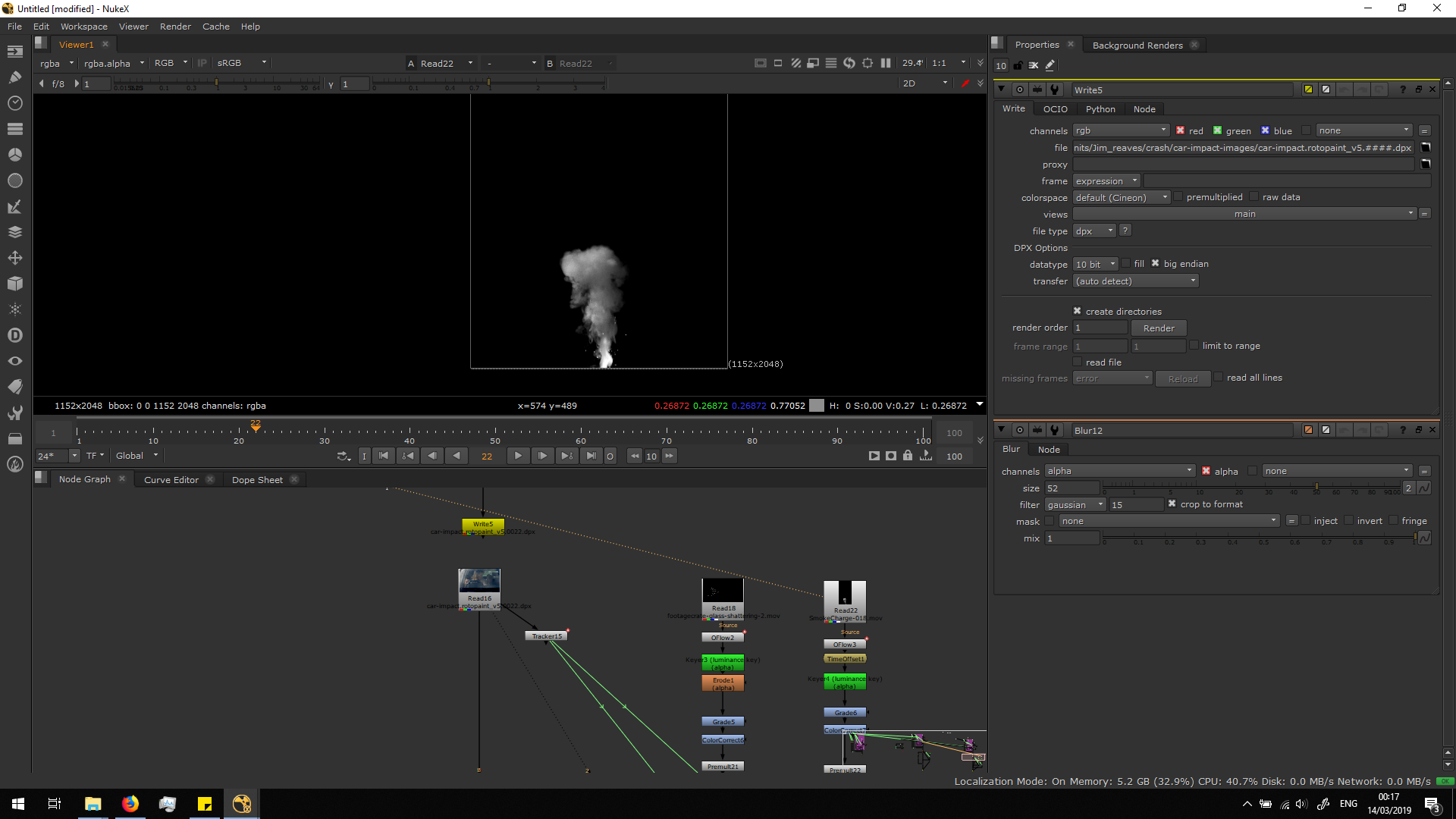 Finally, I premultiplied both FX elements and merge them over the edited .dpx footage. And then, it would be ready to be exported.