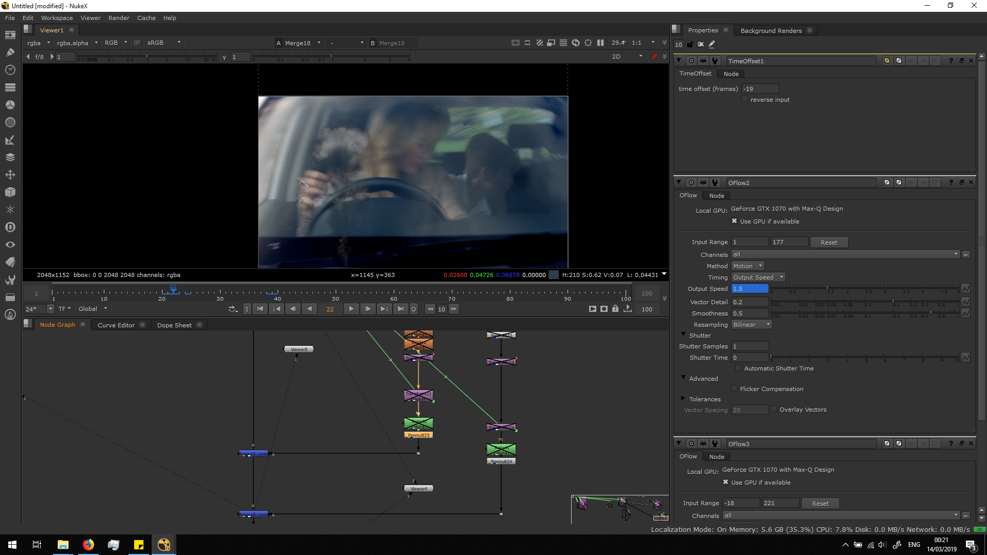The first thing we will make, is adding a Time offset note, in order to make the FX elements movement start at the same time of the crash. Also, I added an Oflow note in order to change the output speed of the FX element according to the speed of the original footage.