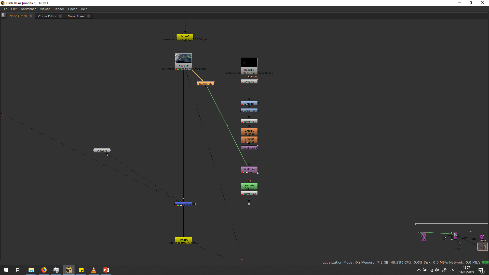 In the second version, I fixed the roto making it more accurate and smooth. I settled the movement of the background, looking it to a tracking for the first half od the video and adding the transformation for the crash, with all the motion blur.