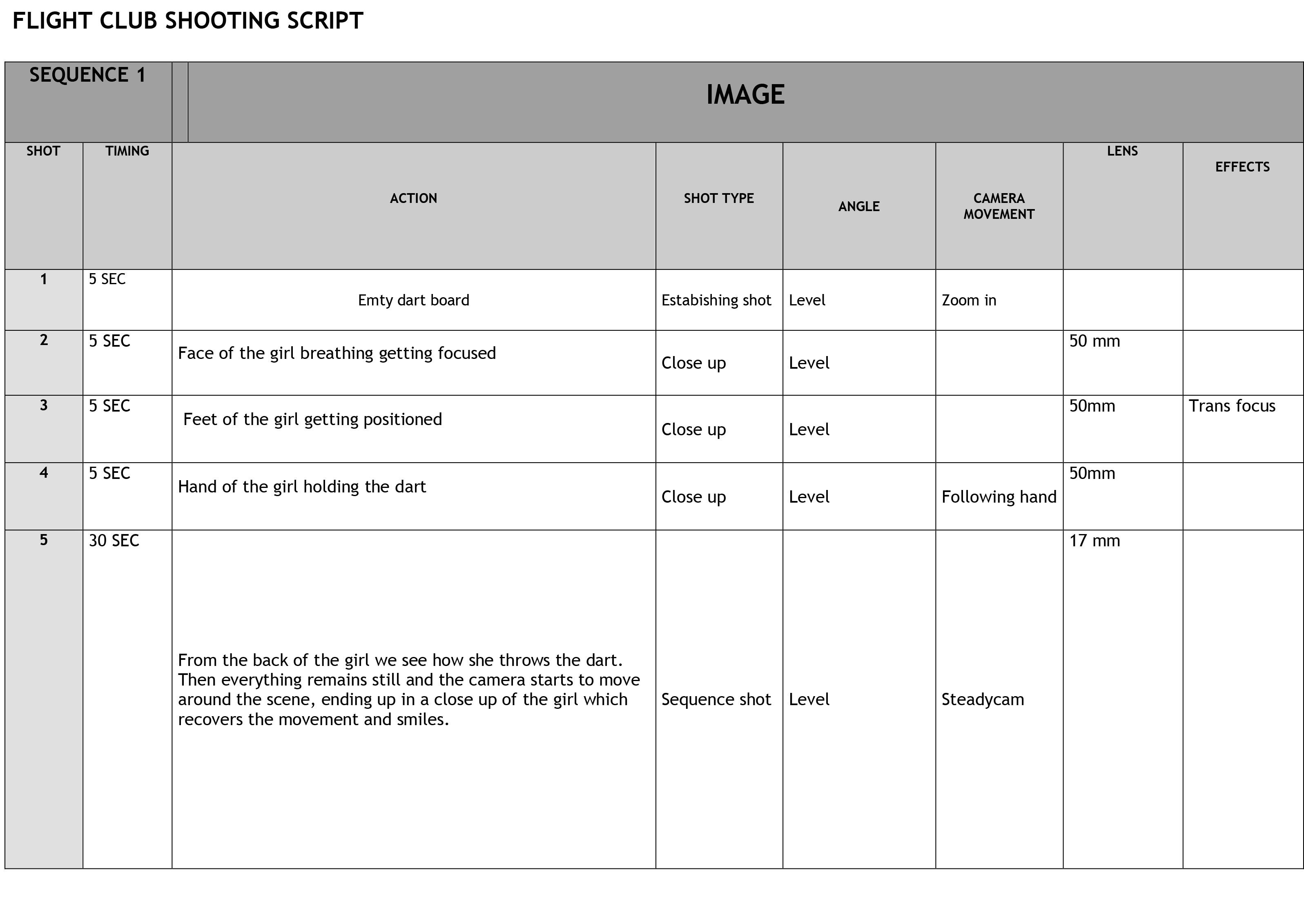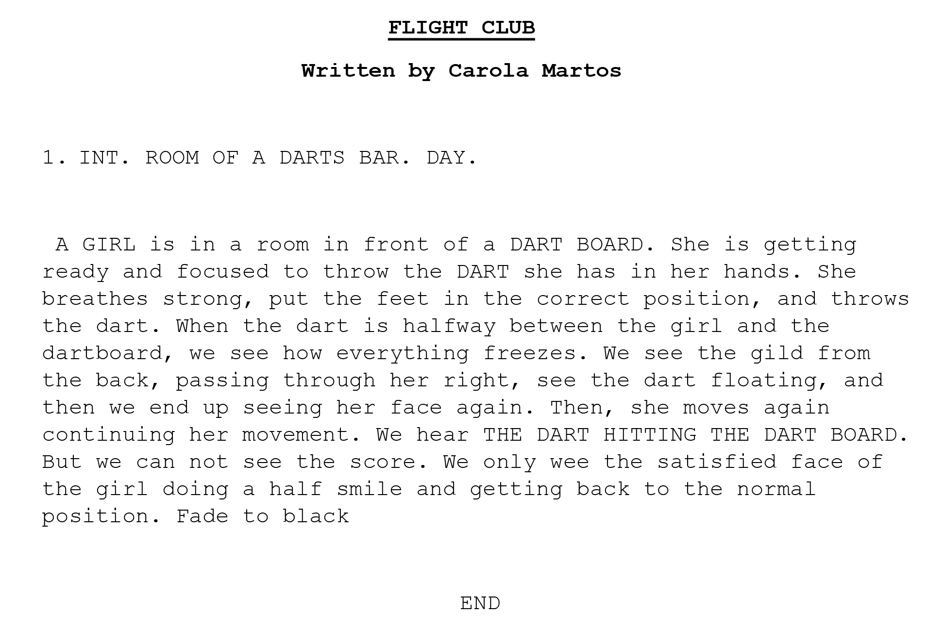 The project will be a continuos shot. The camera will travel through a room in which the main character will be located. We see the main character getting ready to trow a dart,